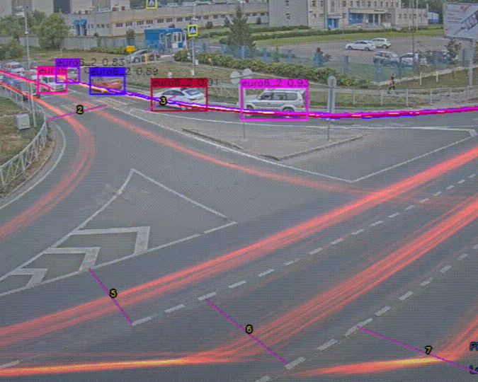 Решение позволяет детектировать, определять и считать 6 типов транспортных средств по направлениям и полосам (при технической возможности ракурса камеры), а так же определять среднюю скорость транспортных средств.